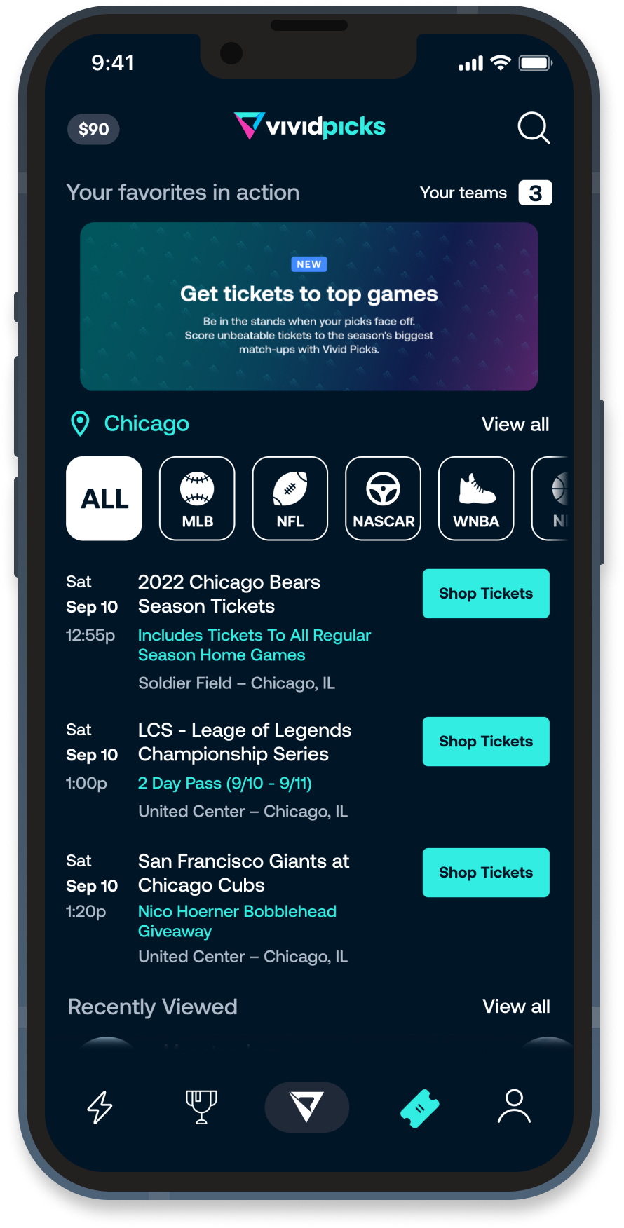 Vivid Picks will continue to provide sports fans with an intuitive and simple-to-use interface that allows both casual and super fans multiple ways to play and win together with friends. Within the new “shop” section of the app, fans will be able to browse and discover tickets across Vivid Seats’ wide range of inventory which includes the four major professional leagues and college sports, as well as a variety of other sporting activities including golf, car racing, rodeo, boxing, and mixed martial arts. Fans will also be able to share and discover popular sporting events in their area, search for their favorite teams and purchase tickets to the matchups everyone is talking about.